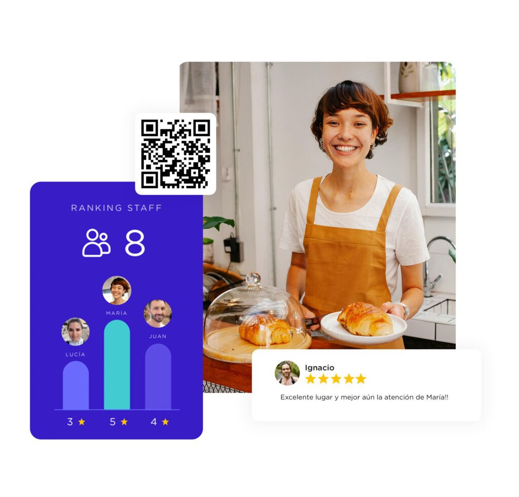 Vincula cada reseña con el empleado que atendió al cliente mediante códigos QR personalizados.